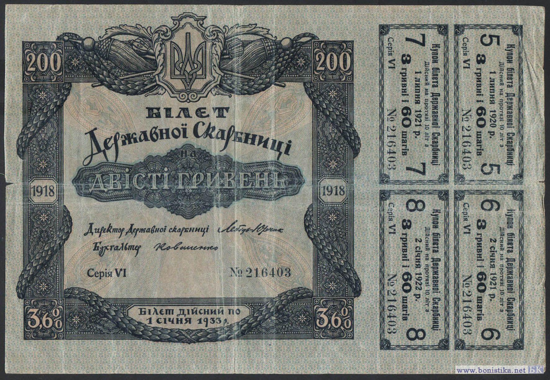 1918.04.29 - 1918.12.14 Українська Держава (гетьман Скоропадський) / 3,6% Білет Державної Скарбниці