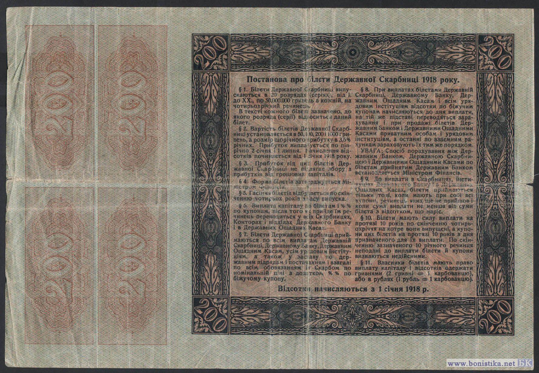 8. 200 Гривень (серия VI), 1918
