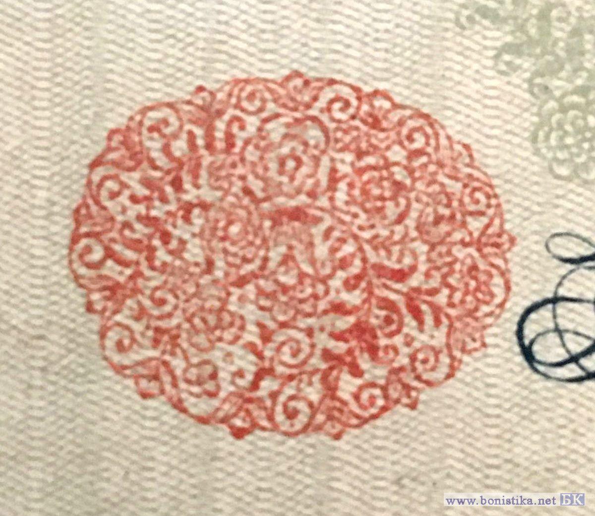 Более светлая краска печати на банкноте, наличие точки под надписью Державної в вязи орнамента. Характеризую как тип клише 1.