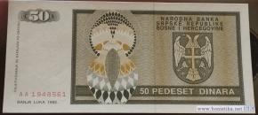 Надрукована на заготовці під 50 динарів Югославії зразка 1990 року(про це свідчить водяний знак,розмір та магнітна стрічка з написом СФРJ*SFRJ)