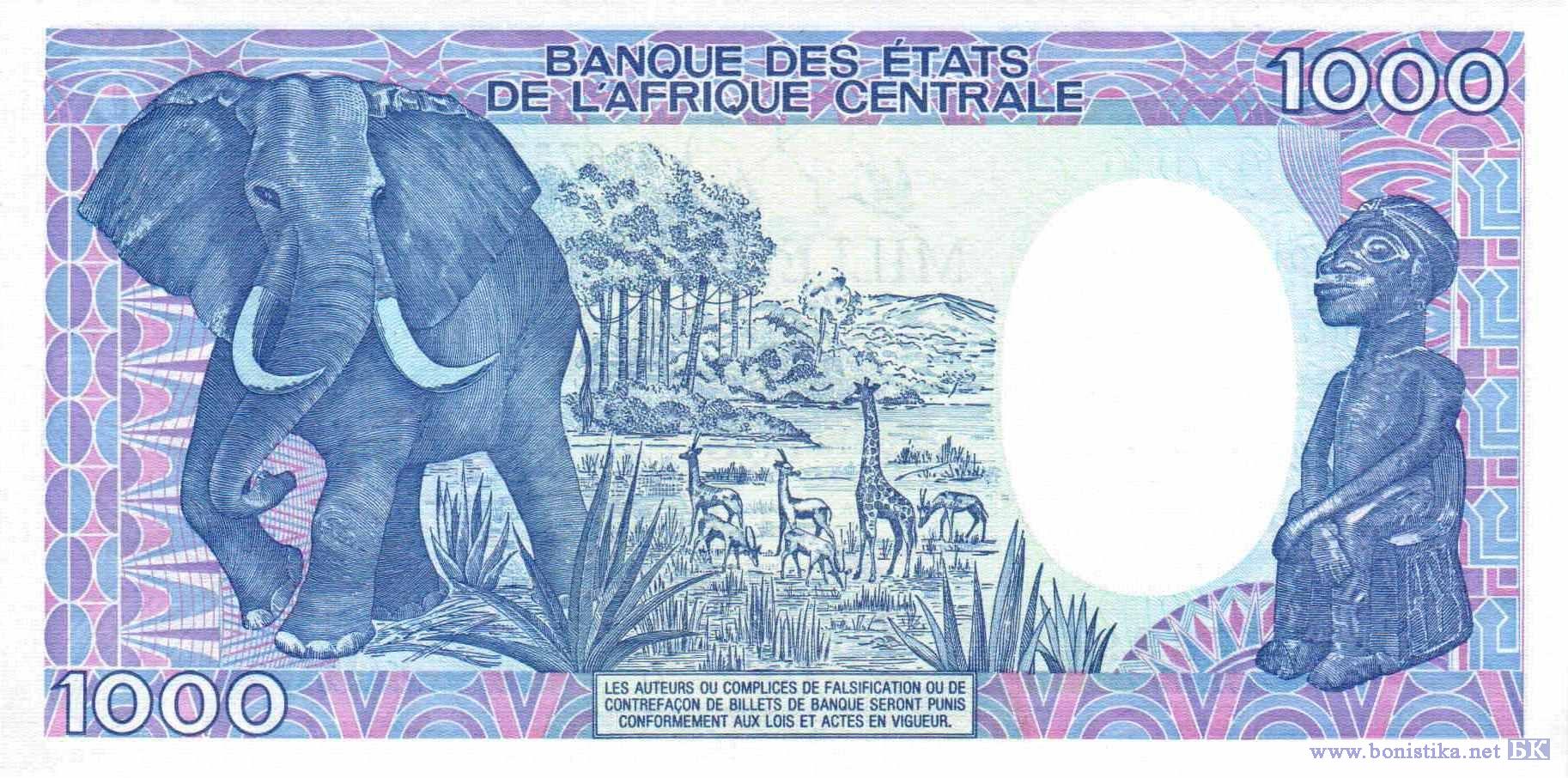 1000 Francs (тип а), 1992