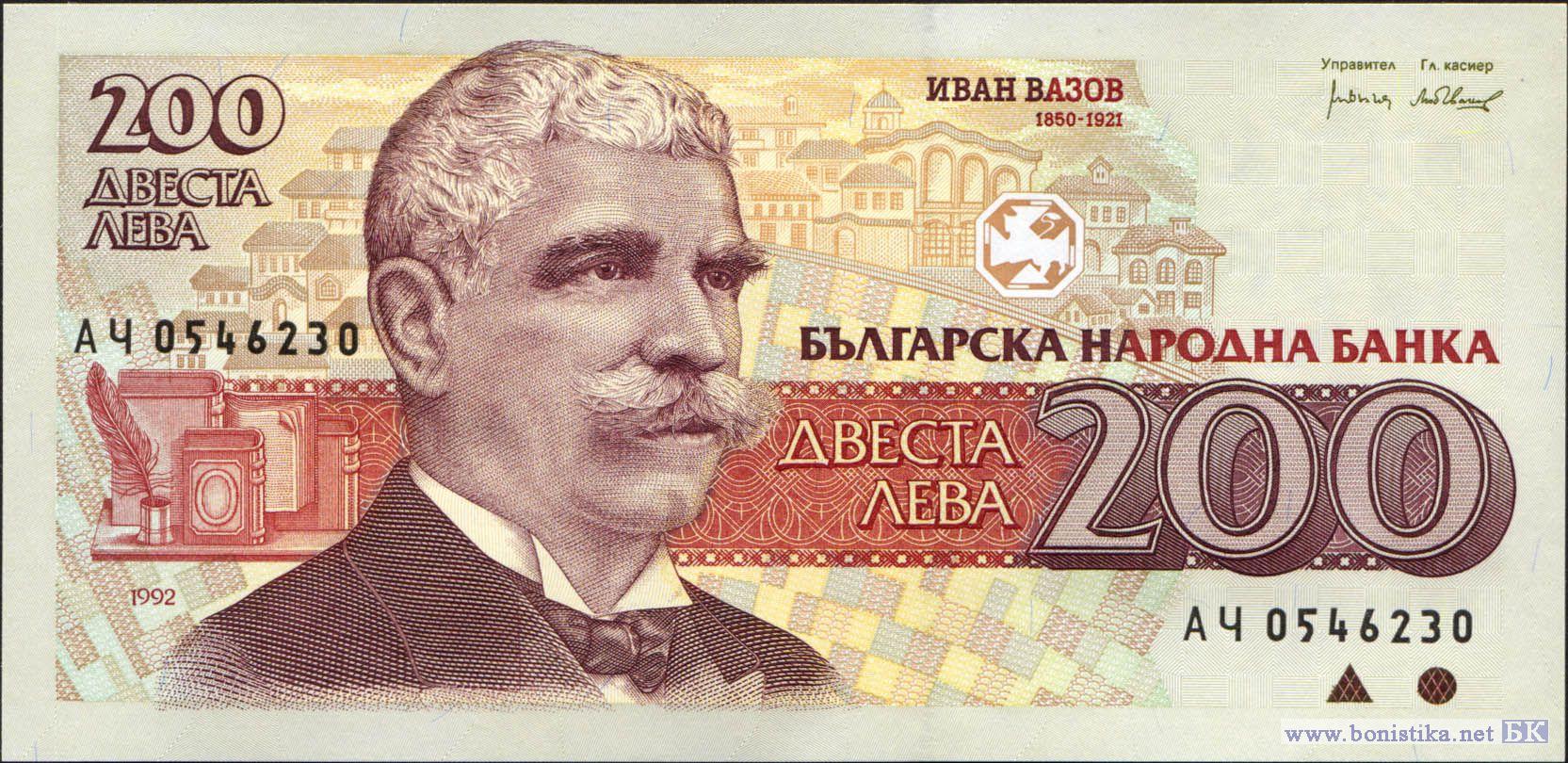 В обращении с 01.11.1992. по 31.12.1999. Академик, министр образования, поэт Иван Минчев Вазов. Лира и лавровый венок - литературная награда вручённая ему в 1895 году.