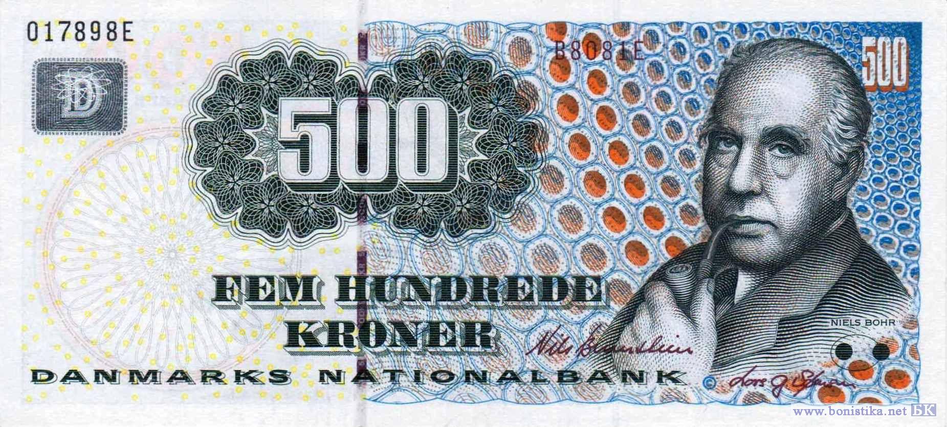 Физик-теоретик, один из создателей квантовой механики, лауреат Нобелевской премии по физике 1922 года, общественный деятель Нильс Хенрик Давид Бор. Фрагмент гранитного барельефа с изображением дракона и рыцаря с мечом и щитом с купели из средневековой церкви Святого Винцента в городе Лиме в Северной Ютландии.