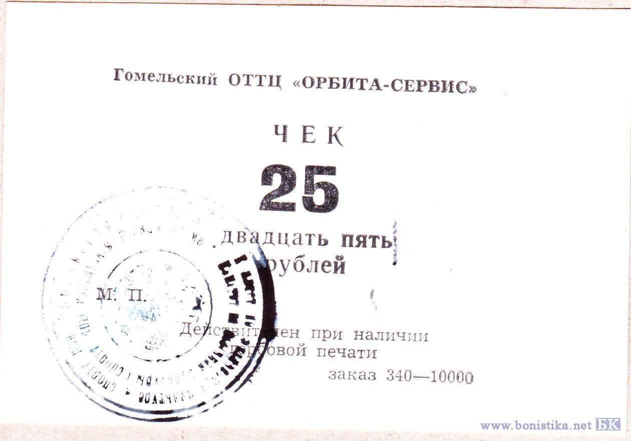 БССР Гомельский ОТТЦ "Орбита-Сервис" чек