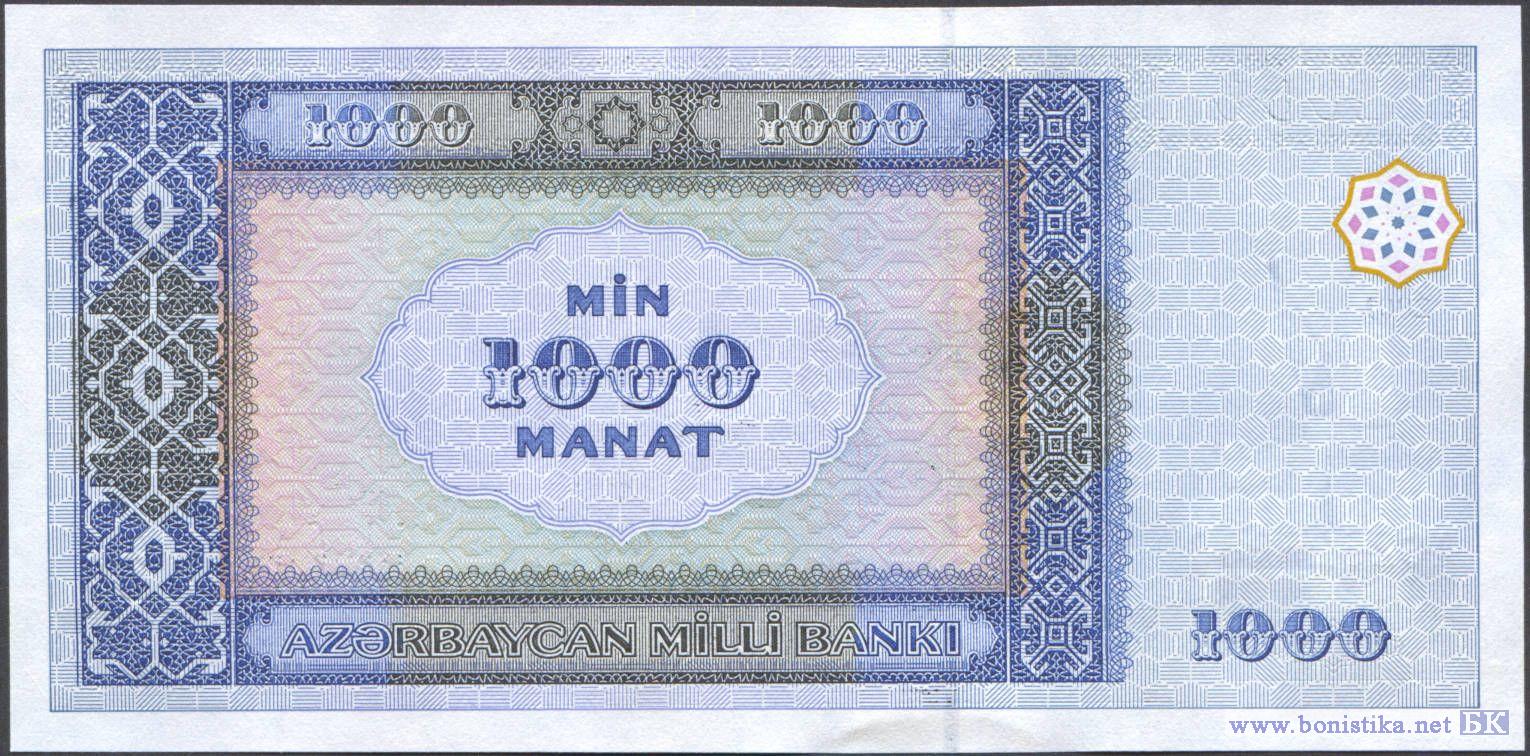 Введена в обращение в 28 декабря 2001 г. Изъята из обращения в конце 2006 г. Аверс: изображение нефтяной промышленности Азербайджана. Реверс: номинал купюры в окружении национального азербайджанского орнамента. Цвета: синий, голубой на разноцветном фоне. Дизайн и печать компания "De La Rue" (Англия)