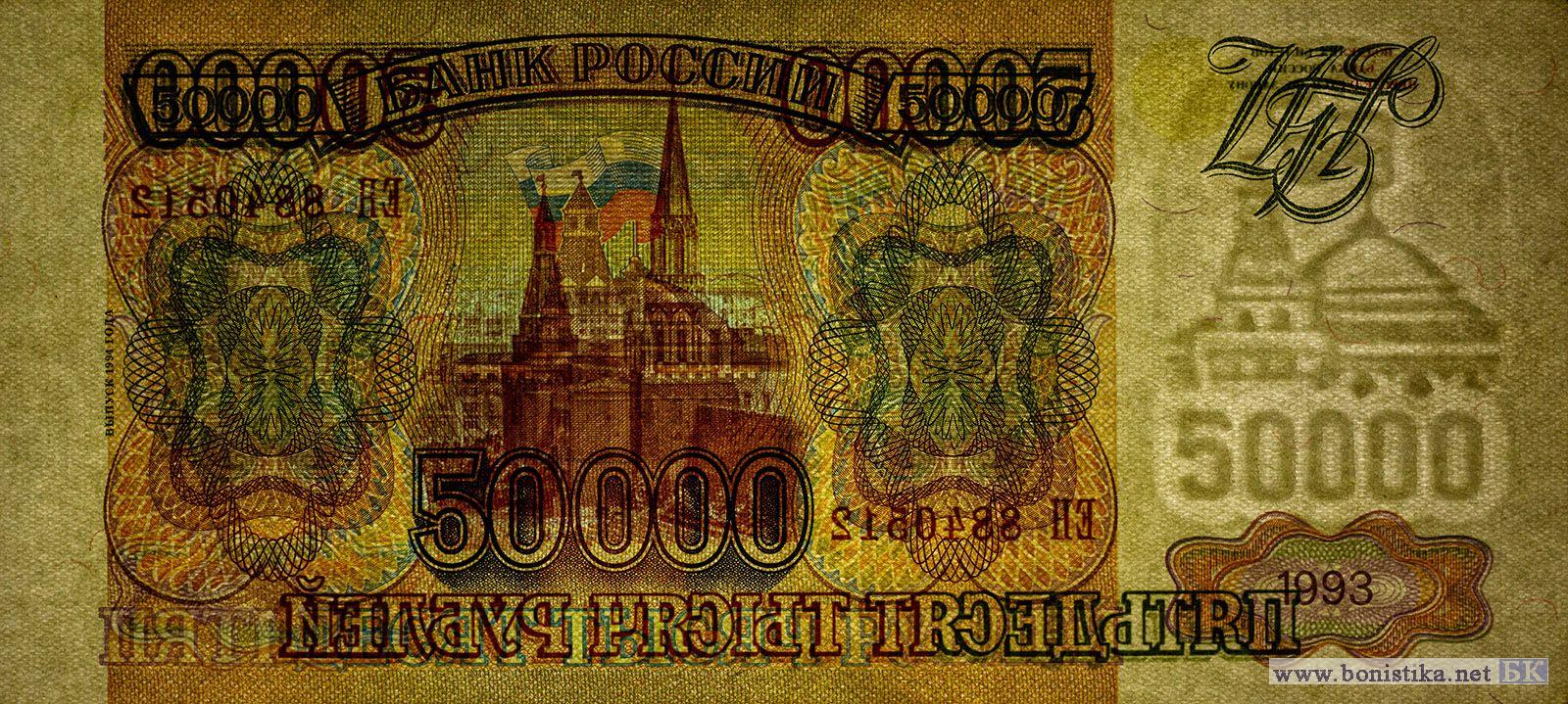 В.зн.- Сенатская башня, флаг и номинал "50000"