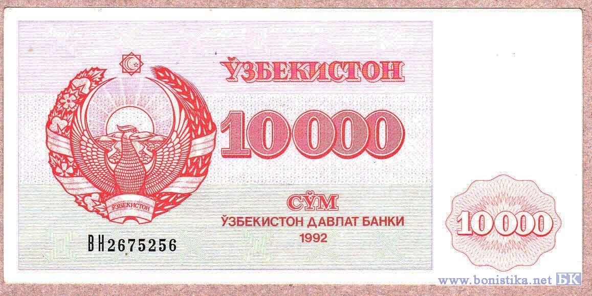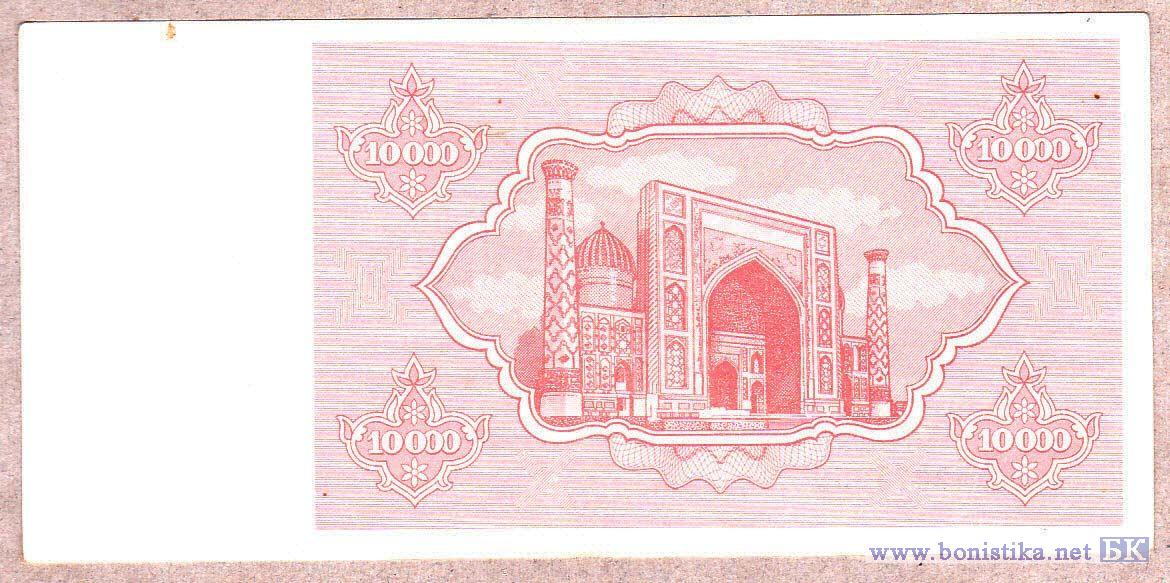 Высота букв серии - 4 мм., высота цифр номера - 3,1 мм. Печать типографская. Вод.зн.- коробочка хлопка. Аверс: герб Узбекистана. Реверс: Медресе Шер-Дор, флористический орнамент. Преобладающий цвет -красный. Принтер: Harrison & Sons. В обращении с 15 ноября 1993 по 1 августа 1994 года.