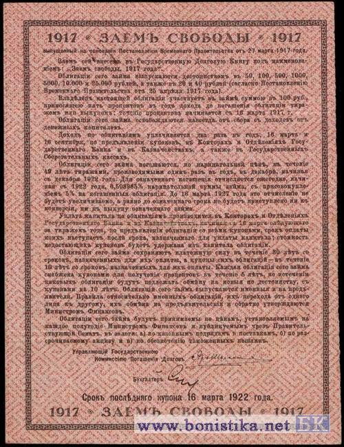 Облигация Займа Свободы номиналом 100 рублей без указания 20 и 40 рублей.