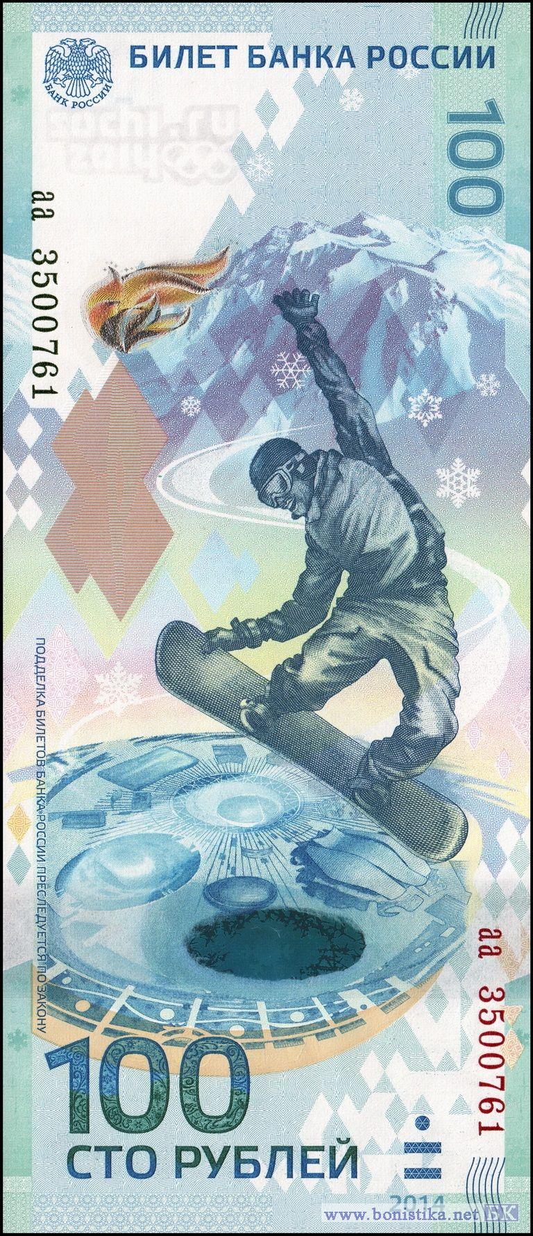 Основные изображения лицевой стороны — фигура сноубордиста, Олимпийские объекты прибрежного кластера в г. Сочи.