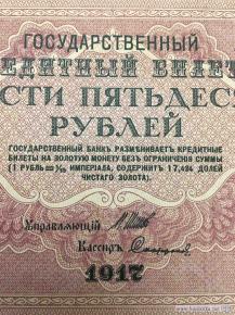 Государственный кредитный билет номиналом 250 рублей образца 1917 года. Согласно постановлению Временного правительства от 22 августа 1917 года, возглавляемого Керенским А. Ф.,