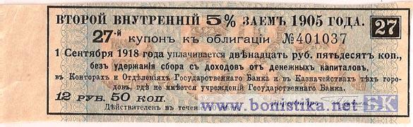 • 1918 г. Второй внутренний 5% заем 1905 года