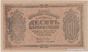 1919, 10 Карбованцiв (серія БР, серая бумага) (разновидность)