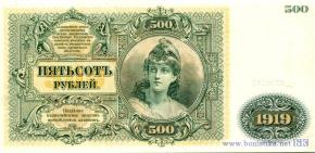 1919 Казначейский знакъ, напечатано в Англии , но не было выпущено в циркуляцию до ноября 1920, до эвакуации Севастополя Тип1- литеры чёрные, Тип2- литеры зелёные