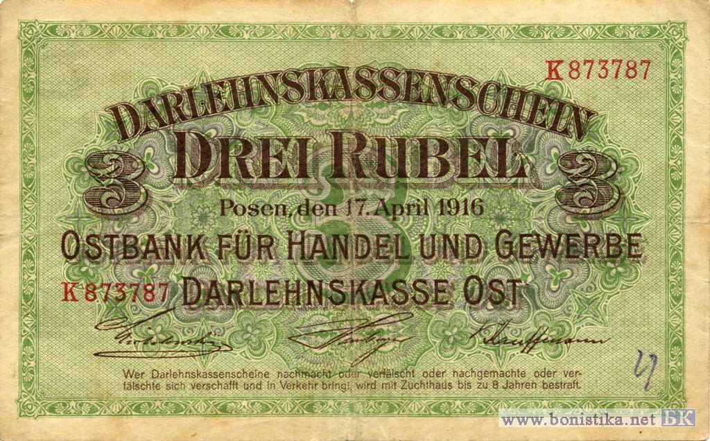 3 rubel Германская оккупация Западного края, 1916