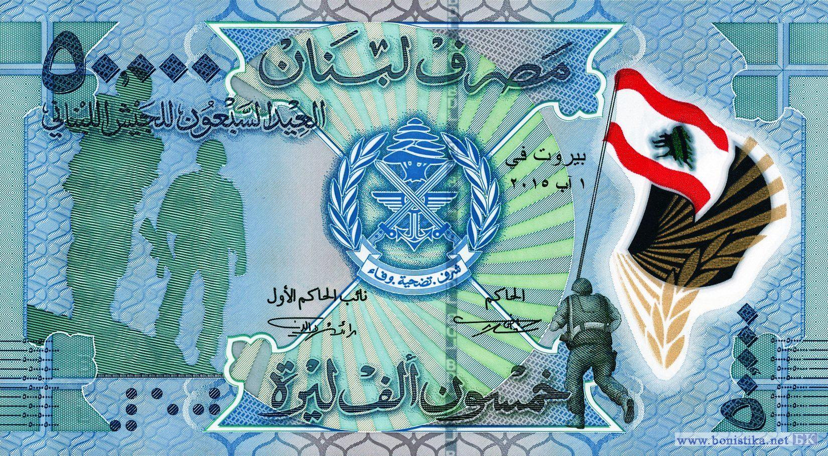 Полимерная банкнота, выпущенная в честь 70-летия армии Ливана.