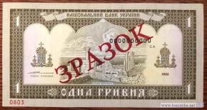 1 Гривня (тип b) ЗРАЗОК, 1992