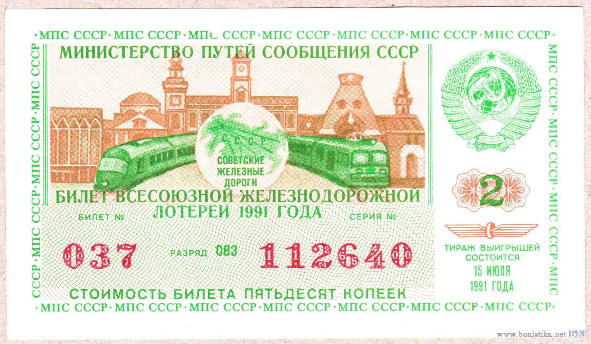 Билет всесоюзной железнодорожной лотереи 1990 года, первый выпуск.