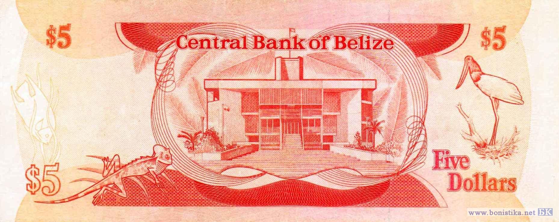 Кораллы и стая рыб на Белизском Барьерном рифе, королева Великобритании Елизавета II, нефритовая голова бога солнца индейцев майя Кинич Ахау, стилизованное изображение водорослей и рыбы-ангела. Стилизованное изображение рыбы-ангела и водорослей, ветви с листьями пальмы, обыкновенная или зелёная игуана (Iguana iguana) - крупная растительноядная ящерица семейства игуановых, деревья, здание Национального собрания на площади Независимости в городе Бельмопан, бразильский ябиру (Jabiru mycteria) - птица семейства аистовых.