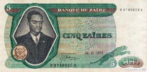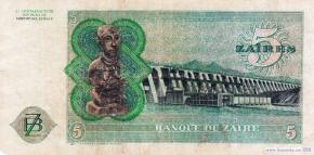 Президент, маршал Мобуту Сесе Секо Куку Нгбенду ва за Банга (Жозеф-Дезире Мобуту), африканский леопард (Panthera pardus pardus) – хищное млекопитающее семейства кошачьих. Монограмма Банка Заира, статуэтка сидящей женщины, плотина ГЭС Инга I на реке Конго, горы.