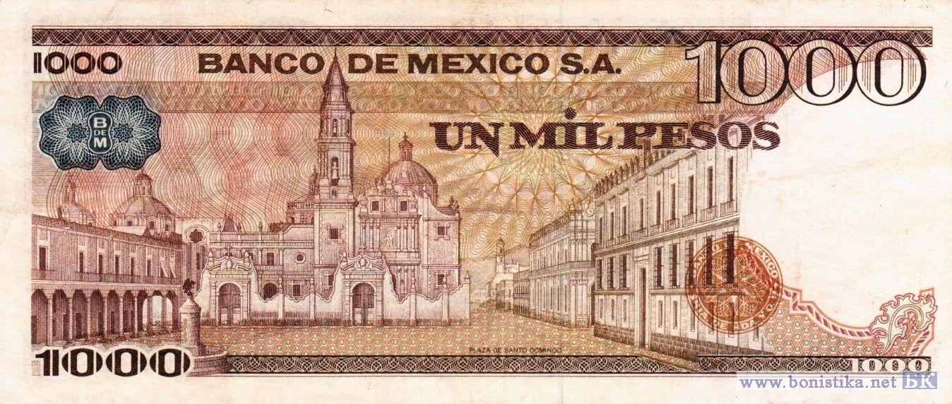 Поэтесса Хуана Инес де Асбахе и Рамирес де Сантильяна, монахиня-иеронимитка, приняла монашеский постриг под именем Хуана Инес де ла Крус, во время эпидемии чумы заразилась и умерла в монастыре. Аббревиатура Банка Мексики, фрагмент фасада Колониального дворца, церковь Санто-Доминго и Дворец инквизиции (ныне Музей мексиканской медицины) на площади Санто-Доминго в городе Мехико.