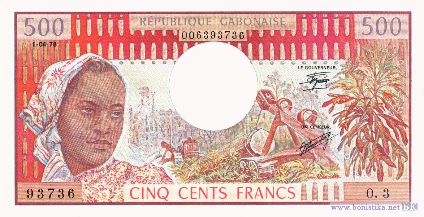 Вариант подписей № 9: Casimir Oye Mba - Jean-François Ntoutoume. Банкнота отпечатана офсетным способом печати.