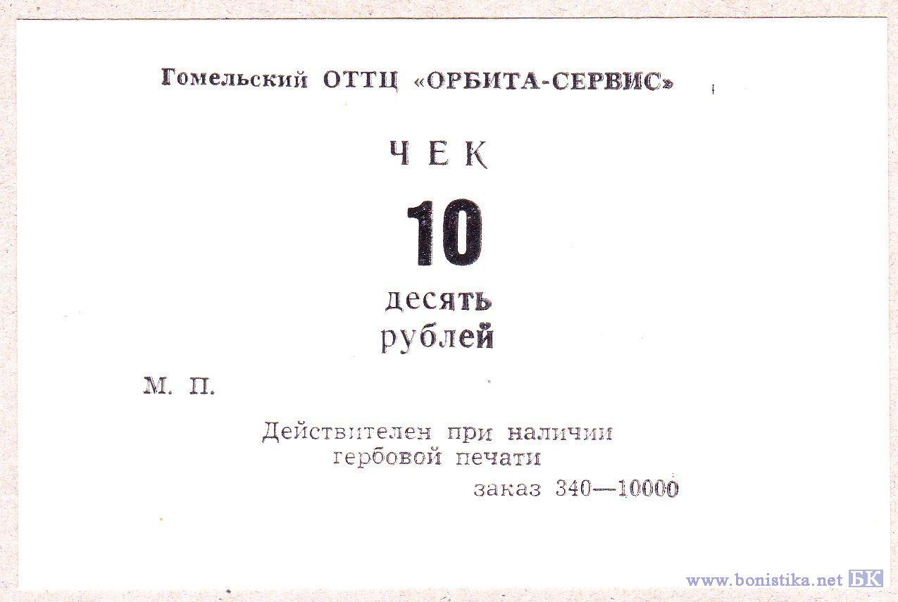 БССР Гомельский ОТТЦ "Орбита-Сервис" чек 19838-19846 П.Рябченко