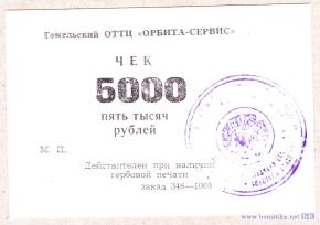 БССР Гомельский ОТТЦ "Орбита-Сервис" чек с указанием номера заказа
