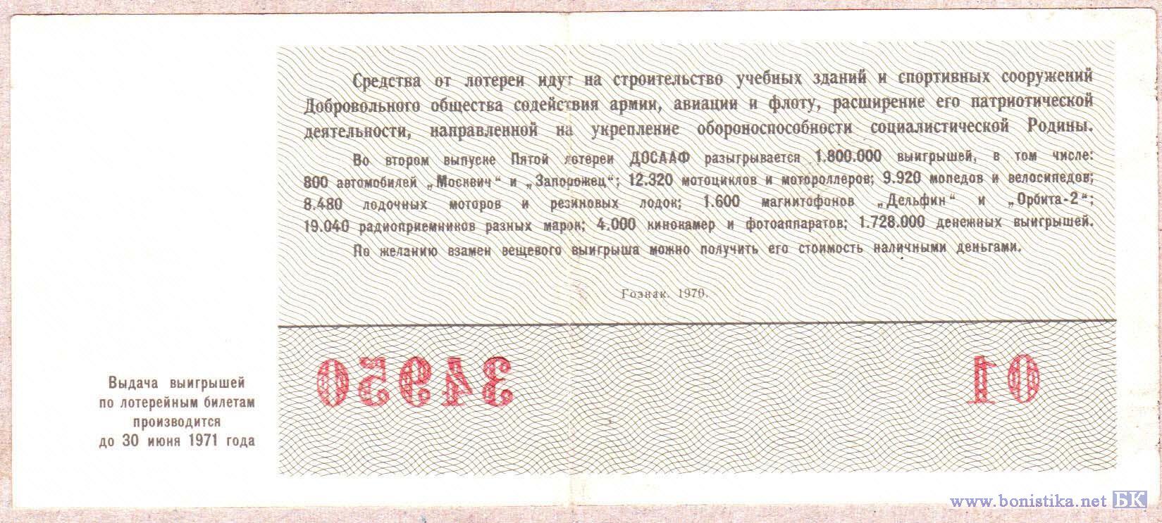 5-я автомотолотерея ДОСААФ СССР (тип а), 1970