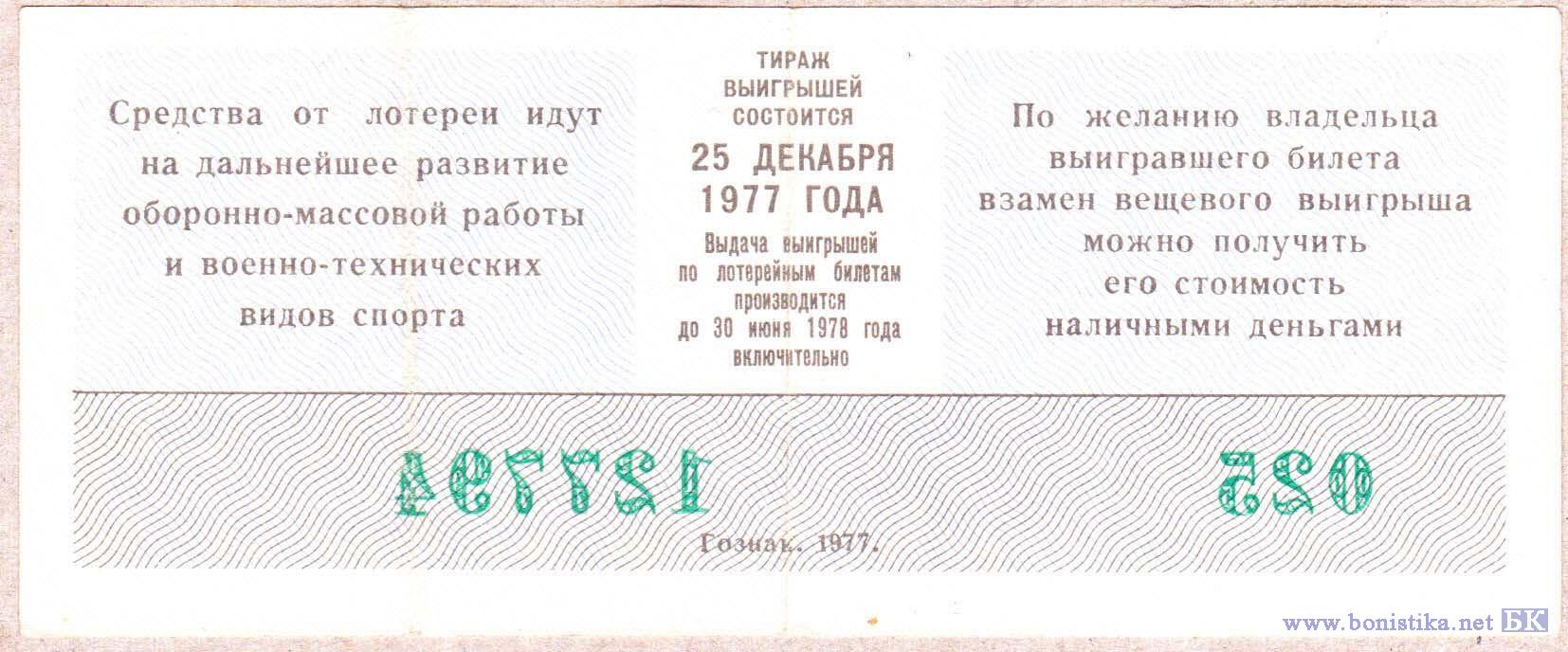 Лотерея ДОСААФ СССР (тип а), 1977