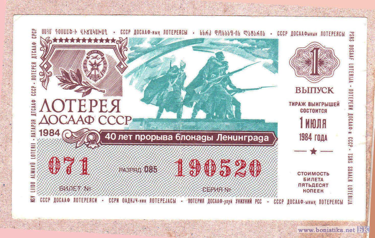 1984, Лотерея ДОСААФ СССР (variation)