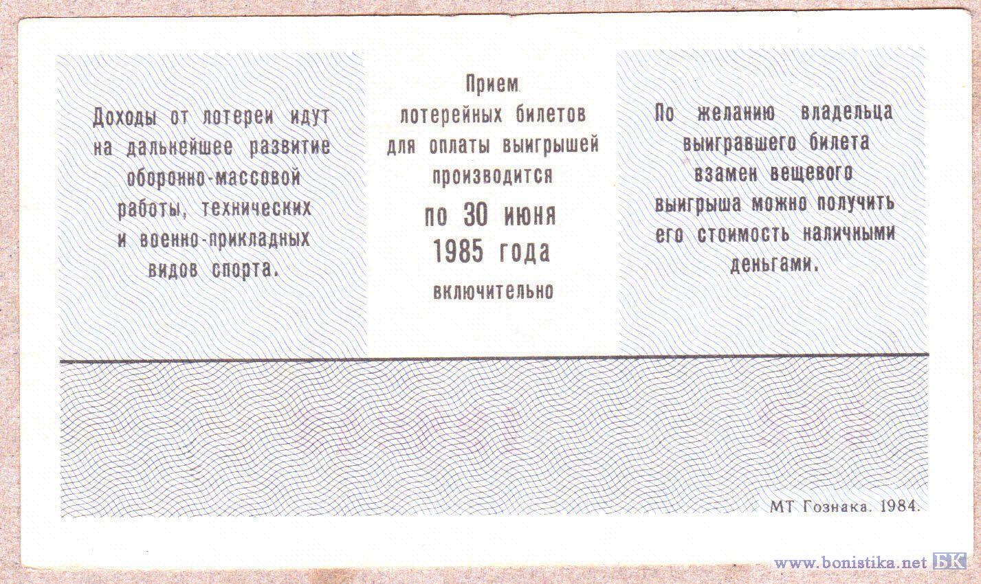 Лотерея ДОСААФ СССР (тип а), 1984