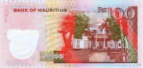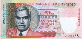 Адвокат, лидер Лейбористской партии, министр образования Ренганаден Синивассен, стилизованное изображение цветов, фрагмент фасада здания Банка Маврикия в городе Порт-Луи, скульптура древнегреческой богини правосудия Фемиды с мечом и весами. Деревья, здание Верховного суда в городе Порт-Луи.