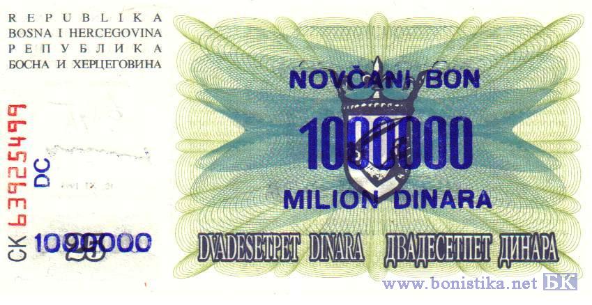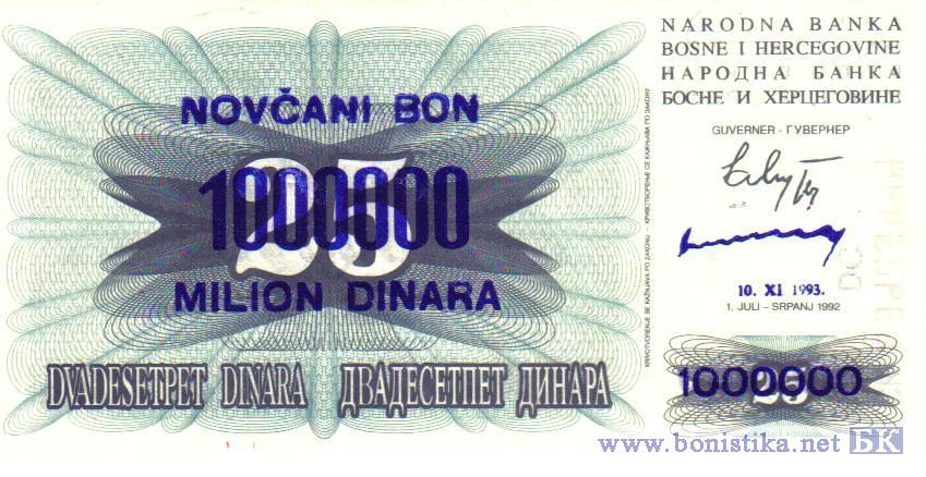 1000000 Dinara на 25 Dinara (тип b), 1993