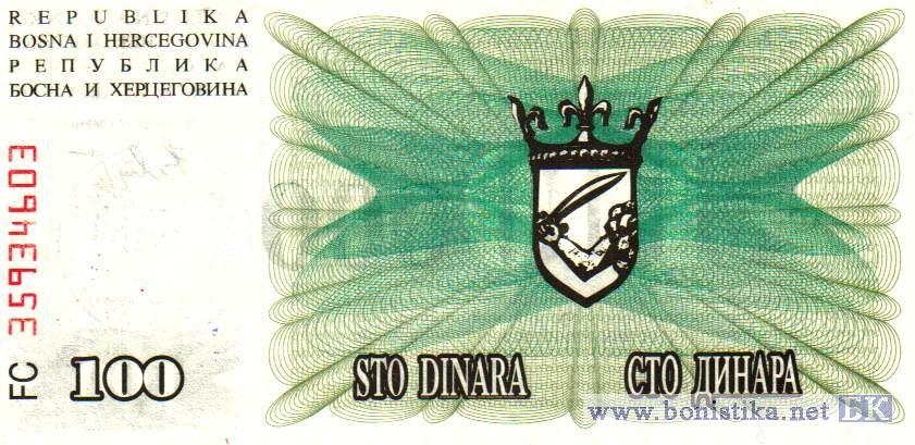 100000 Dinara на 100 Dinara (тип a), 1993