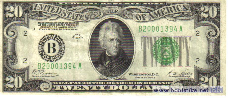 20 Dollars B (B, тип 1), 1928