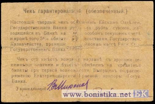 Чек гарантированный (обеспеченный)5 рублей малой формы