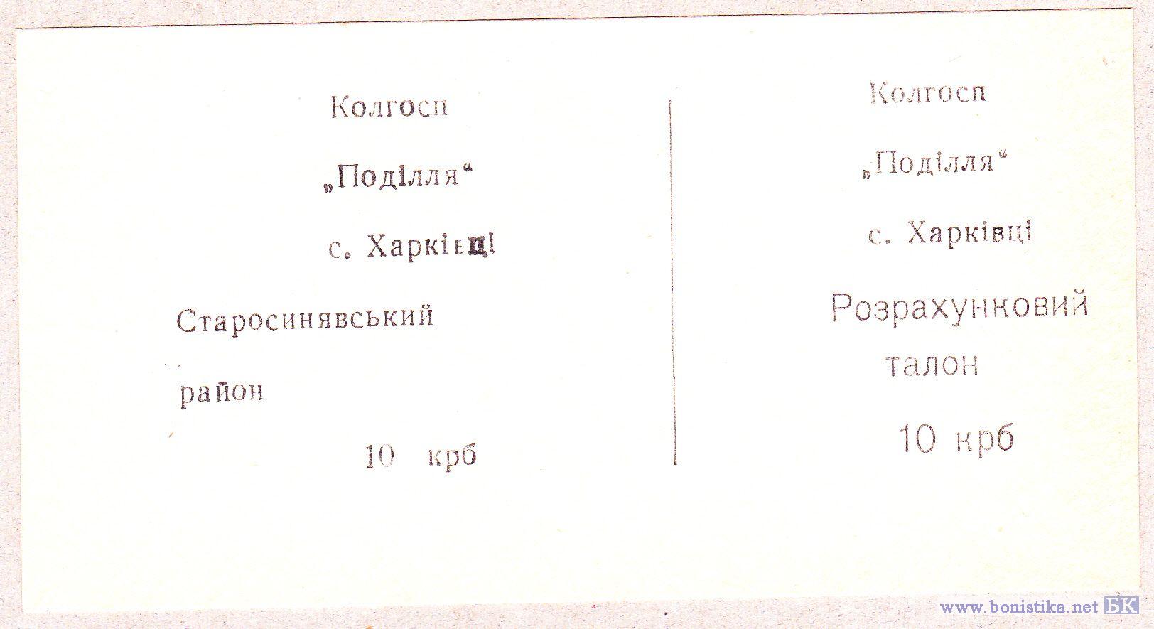 УССР, Хмельницкая обл, Старосинявский р-н, село Харьковцы, колхоз "Подiлля"