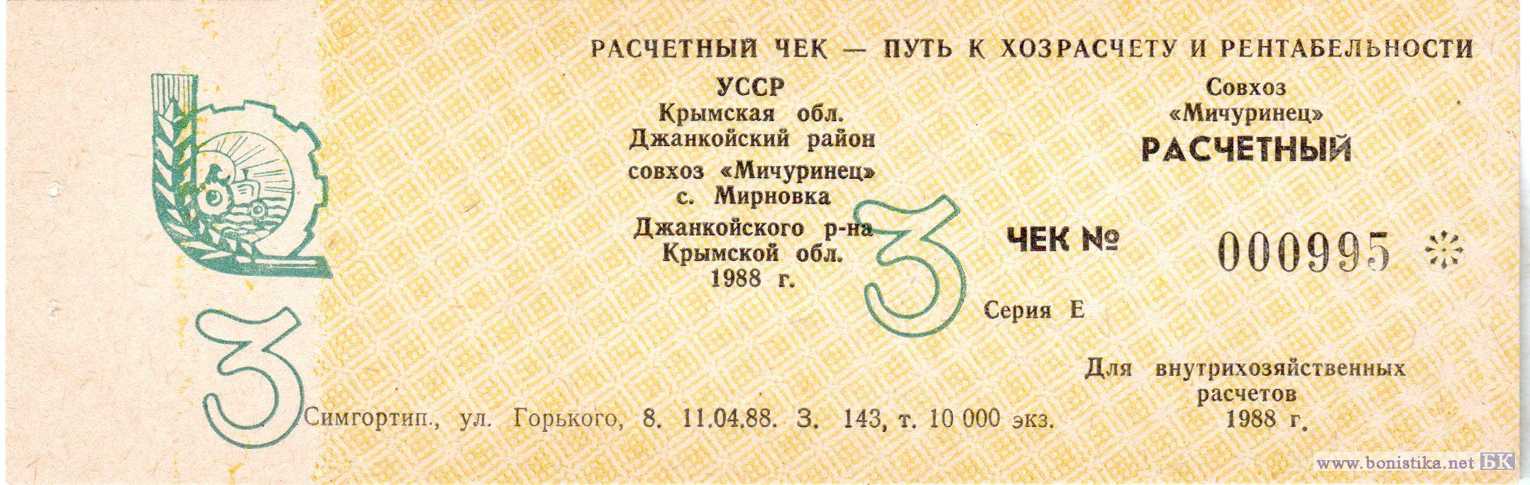Чек. УССР, Крымская обл., Джанкойский р-он,совхоз"Мичуринец",село Мирновка