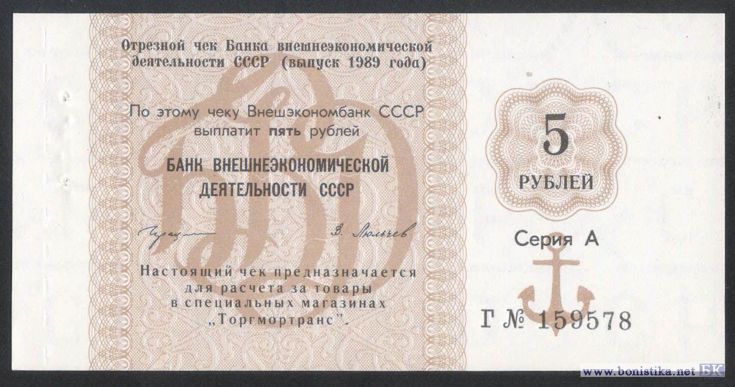 Отрезной чек Банка внешнеэкономической деятельности СССР