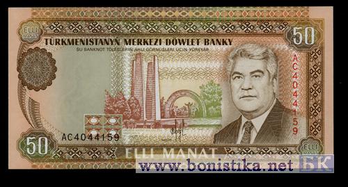 Аверс: Портрет С.Ниязова на фоне Мемориала погибшим на войне.