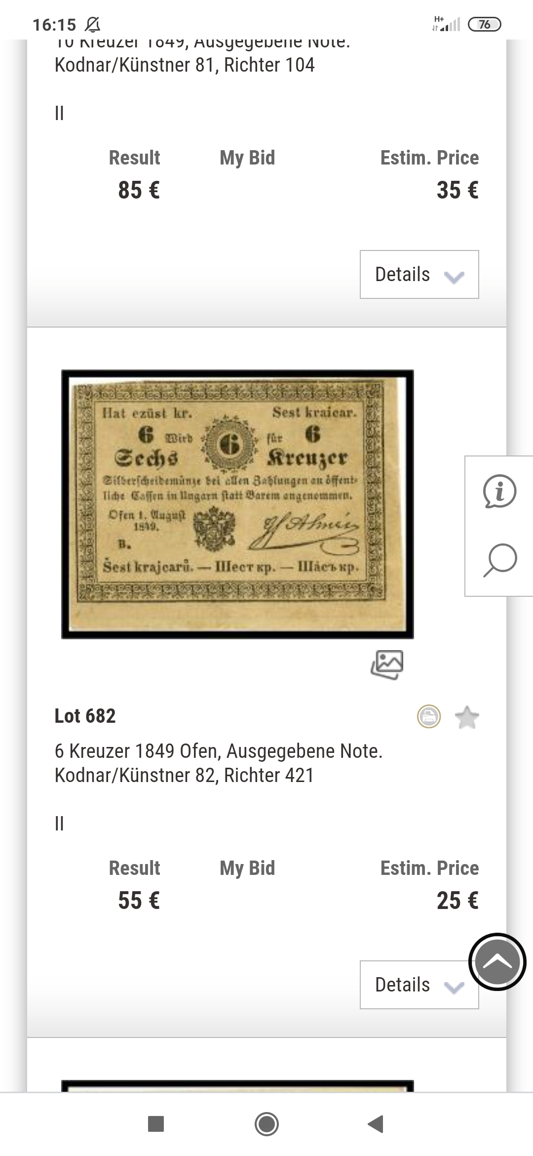 Скрин с австрийского аукционного дома, где, по моему скромному мнению, должен быть наибольший интерес и наиболее актуальные цены на австрийскую бону.