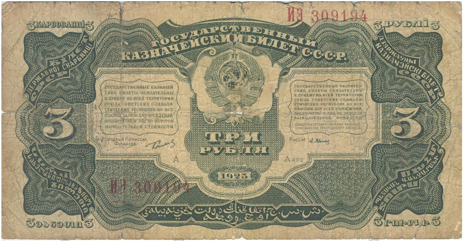 информация по казначейским билетам 3 рубля 1925 год, просьба
