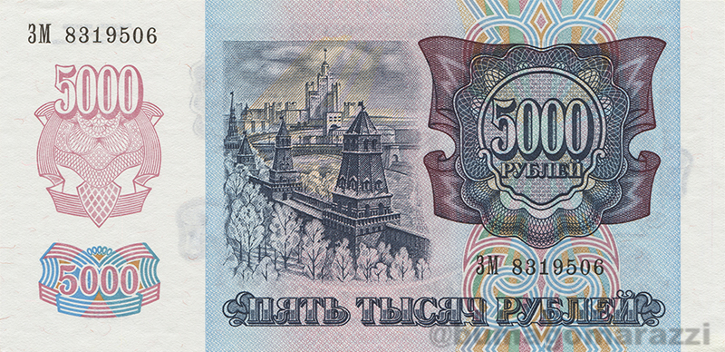 5000 рублей 1992 - под ультрафиолетом 365нм