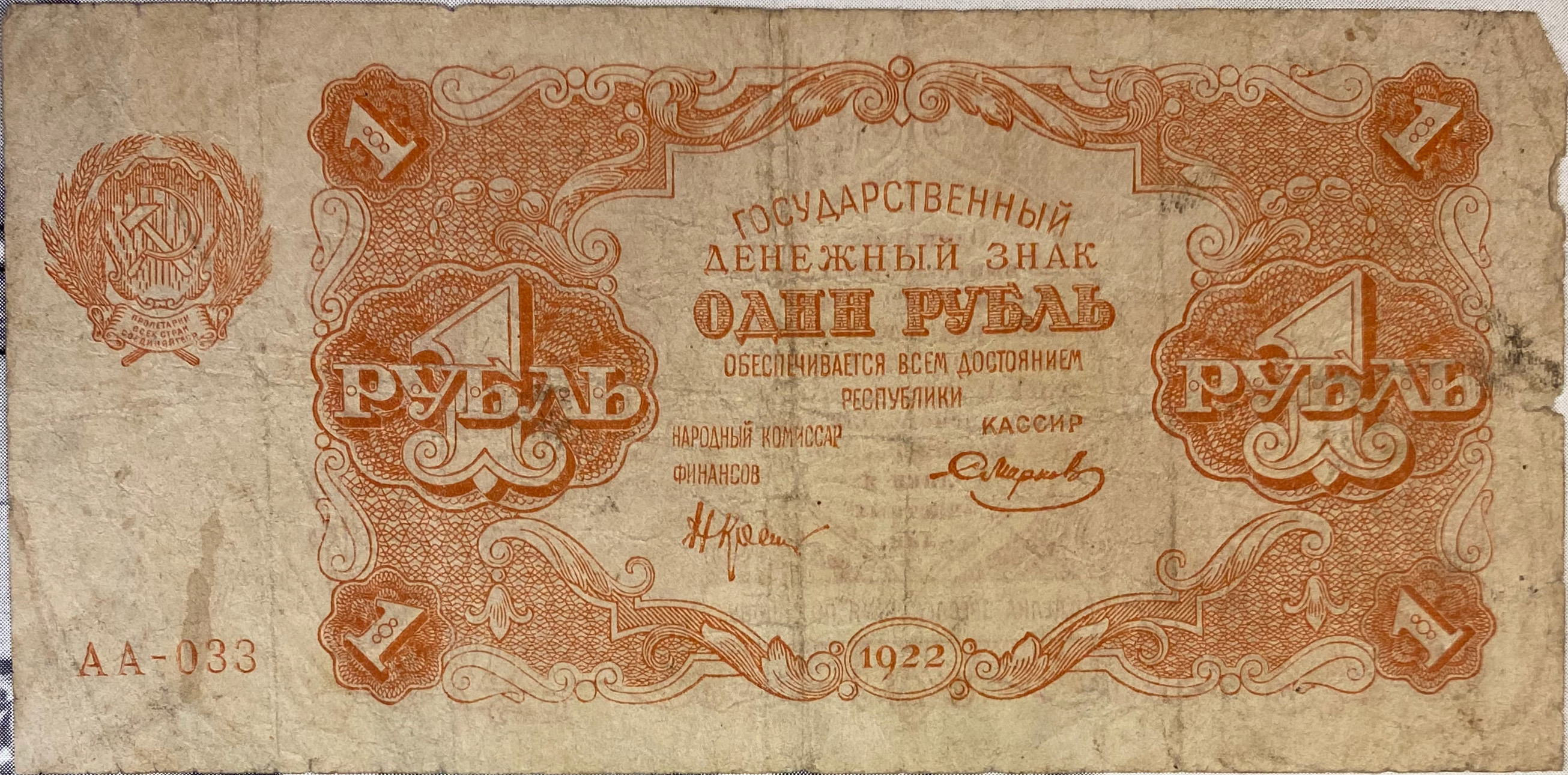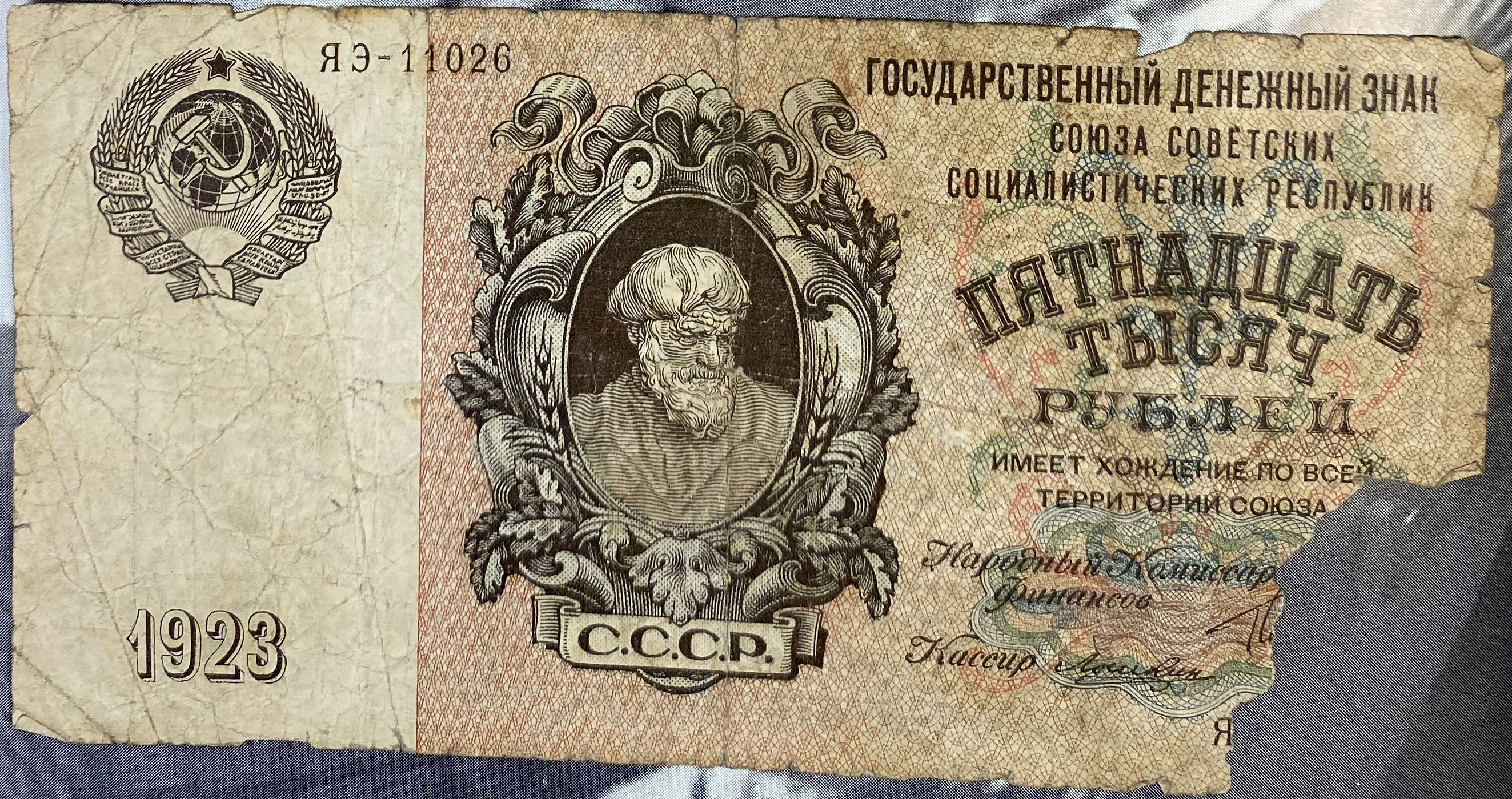 | 15000 рублей 1923 года с неопознанной подписью