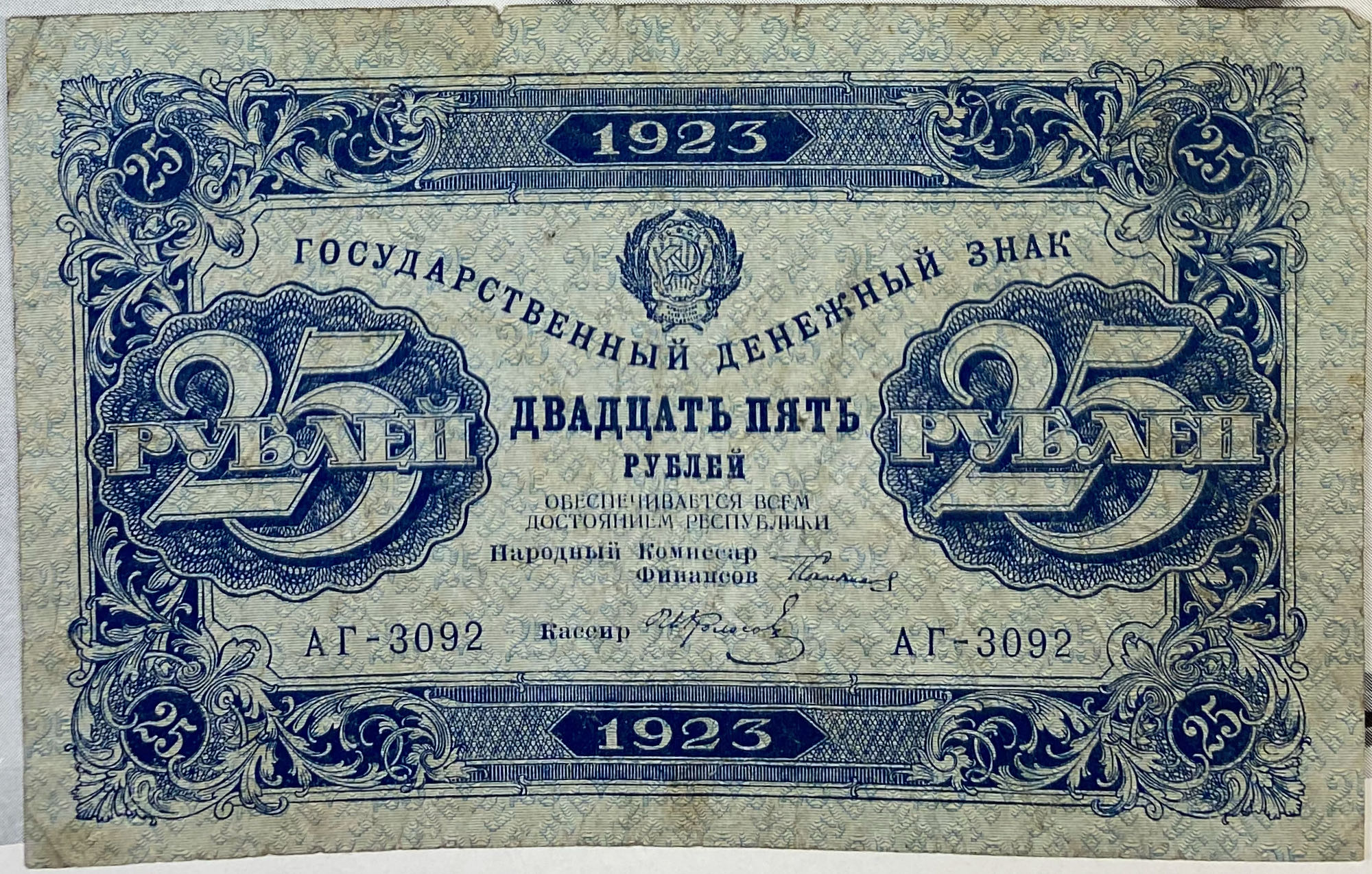 | Нашел 25 рублей 1923 года с подписью не из списка.