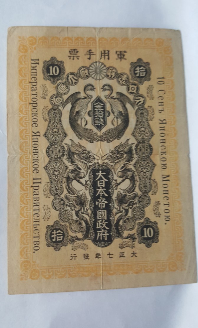 10 сен 1918 г. Военная эмиссия для Дальнего Востока России и Маньчжурии выпущенная для "Сибирской экспедиции". Самый распространенный номинал. Ориентировочная цена в таком сохране 6-8 т.р.