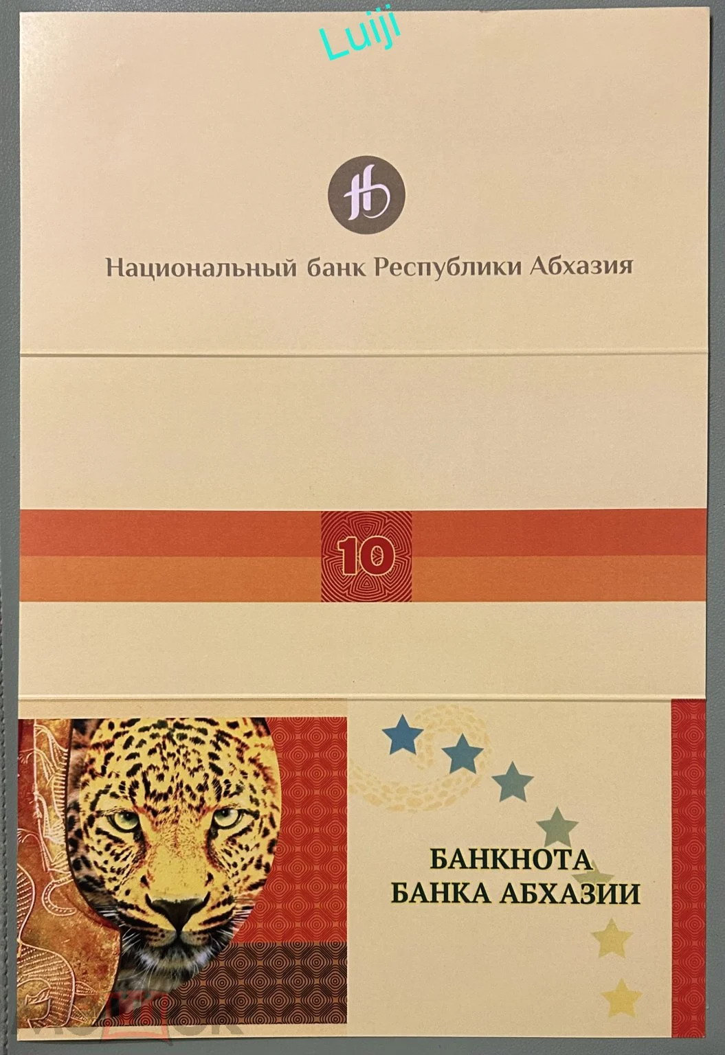 3. Памятная банкнота Банка Абхазии образца 2024 года номиналом 10 апсар («Леопард»).