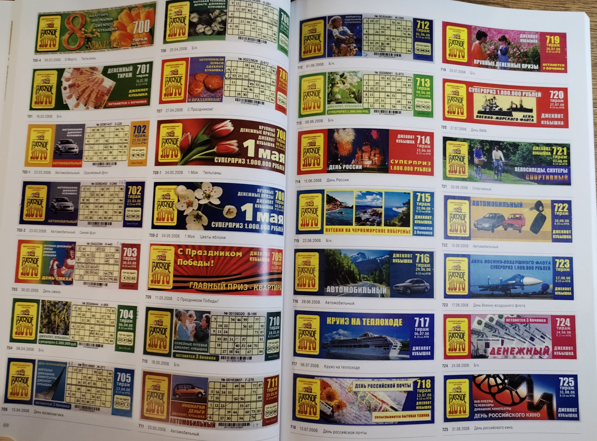 Зайцев В.С. Русское лото. Каталог тиражных лотерейных билетов 1994-2023. М.: Издательство Олега Пахмутова, 2024. - 232 с. цв. ил. Мягкая обложка, 210х300 мм. Тираж 100 экз.
