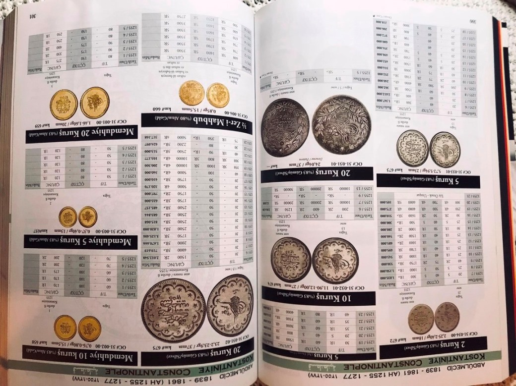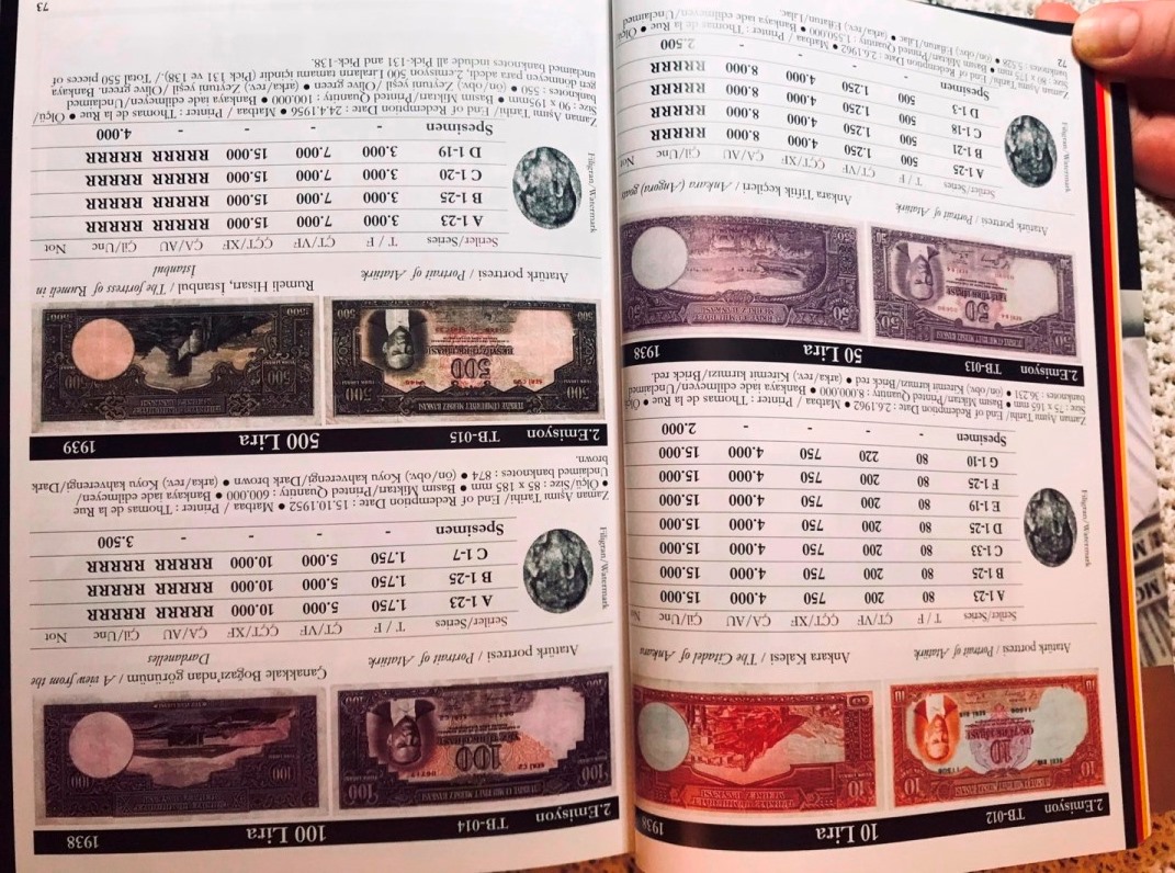 Прекрасный подробный каталог по банкнотам и монетам Османской империи, её провинций и Турецкой республики на турецком и английском языках, 2023 год, обложка мягкая, 526 страниц, бумага мелованная, размер 23 на 17 см, печать типографская, цветные иллюстрации. Указаны в долларах цены на банкноты и монеты. Информация о банкнотах, с разновидностями по сериям (литерам), подписям и водяным знакам, монеты по годам, металлам, весу и диаметрам, местам чеканки.
