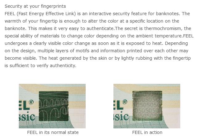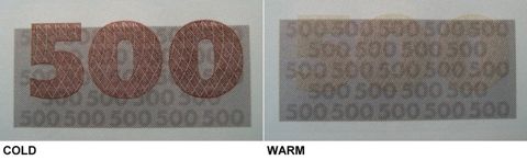 Which elements of these banknotes were made using thermochromic ink? The point is, such ink itself isn't particularly expensive, and perhaps it was used throughout the entire series?